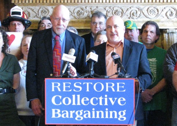 On Thursday, State Representative Mark Pocan and Senator Fred Risser held a joint news conference to announce the Collective Bargaining Restoration Act, which would repeal the anti-union provisions of Wisconsin Act 10.