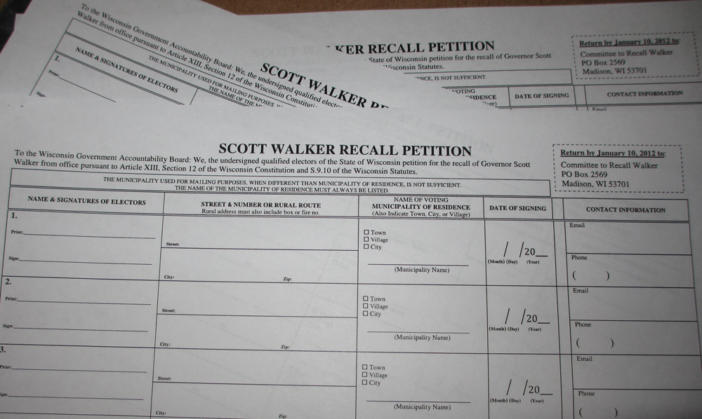 Today the six retired judges who comprise the Government Accountability Board voted to authorize staff to request a one week extension for the certification of the latest round of recalls. While the Board approved sufficient signatures for the four recalls against Republican Senators Fitzgerald, Wanggaard, Moulton and Galloway, GAB staff attorney Michael Haas recommended the they request a two week extension for the certification of signatures on petitions to recall Governor Scott Walker and Lt. Governor Rebecca Kleefisch.