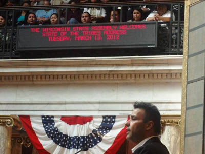 With members of the sovereign nations of the eleven Wisconsin Indian Tribes filling the galleries and state legislators looking on, Greendeer began his address with a reminder of what Indian Country stands for: Respect.