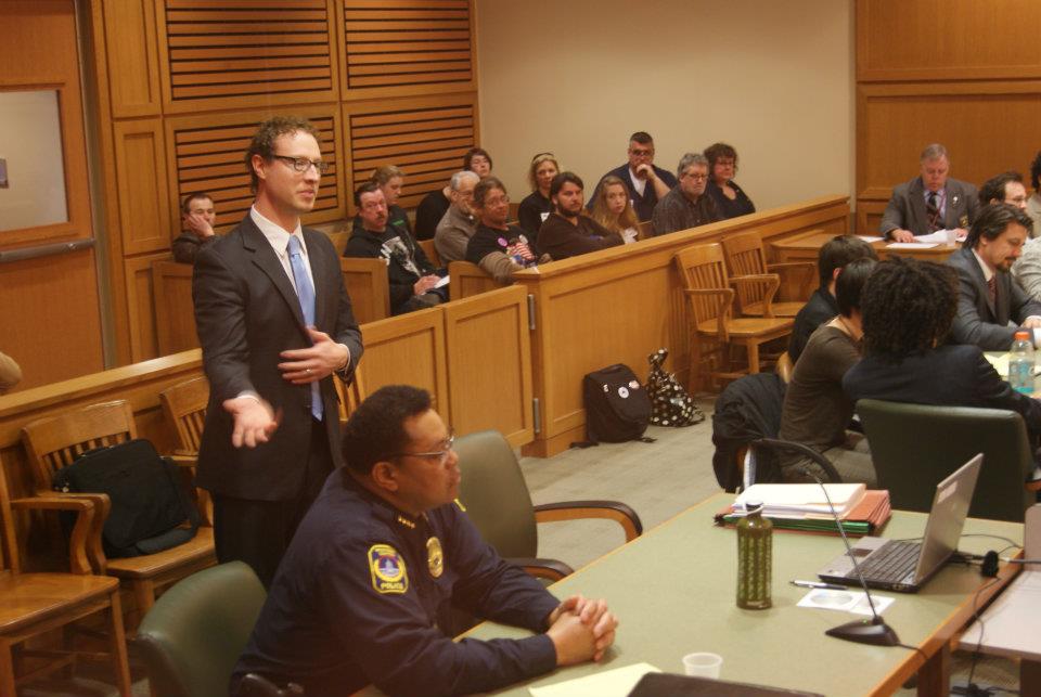 Coincidentally, the footage on the camera is something the Capitol police may want to keep under wraps. Immediately before his arrest, Mr. Kohl-Riggs had been videotaping testimony of six defendants on trial for “Resisting or obstructing a law enforcement officer”, a state Class A misdemeanor. The defendants peacefully refused to leave a protest at the Capitol on Aug 25, 2011. Charles Tubbs, Chief of the Wisconsin State Capitol Police was the prosecution’s only witness. Mr. Kohl-Riggs was one of only two people videotaping the court proceedings. Kohl-Riggs shot the footage with the intent to create and publish a video to highlight inconsistencies between Chief Tubbs’ testimony and the events in question. In light of the confiscation of Kohl-Riggs’ camera, the other videographer present, working for the conservative think tank the MacIver Institute, published the only video of the trial, video which was then picked up by Fox News.