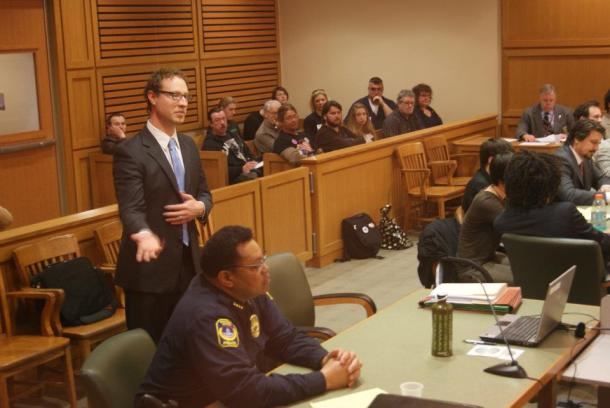Chief Charles Tubbs and ADA Chris Freeman at the jury trial of the 6 remaining defendants of the Rotunda 13. Photo: Leslie Amsterdam