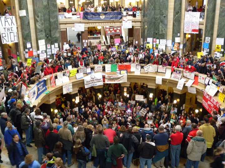 At first, the crowds at the capitol were consistently in the thousands, if not tens of thousands. At their peak, hundreds of thousands of people moved through and around the capitol petitioning for a governmental redress of grievances for how the new governor had hijacked Wisconsin.