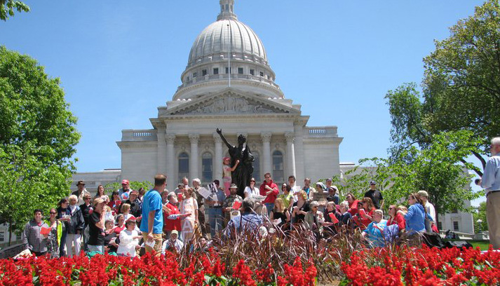 And the rest, they say, is history. On March 17, 2012, SSA received the ACLU of Wisconsin William Gorham Rice Civil Libertarian of the Year Award for being the longest-running singing protest in history. They continue to serve to maintain a daily progressive, pro-people presence at the Capitol, as well as provide a place where citizens can come together and rejuvenate their spirits through song.