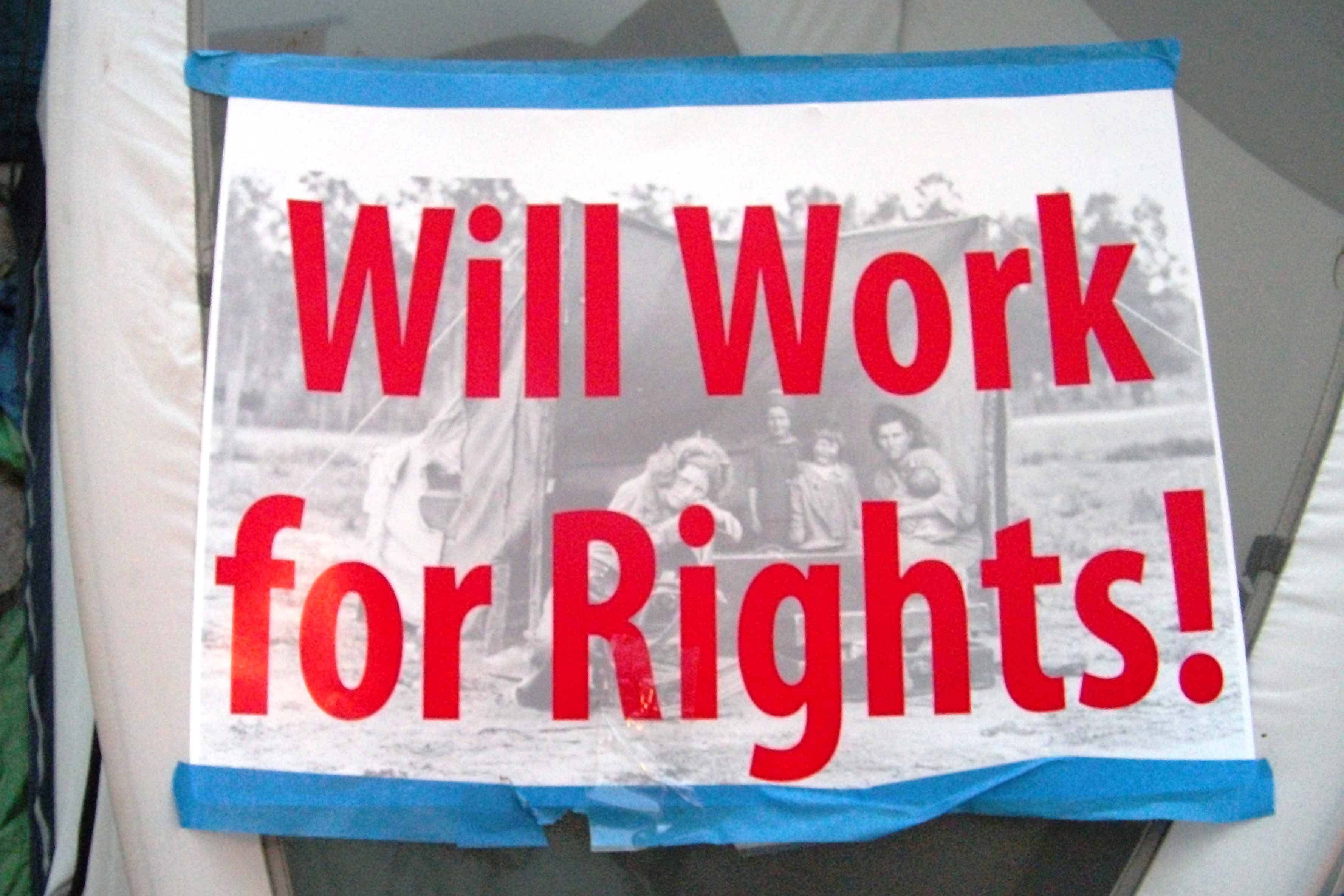 Sign on a tent in Walkerville, the protest encampment outside the Capitol June, 2011 (photo by Rebecca Kemble)