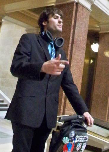 Below Segway Jeremy Ryan challenging the unconstitutional Department of Administration rules prohibiting free speech in the capitol: