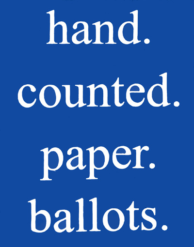 Paper Ballots provide a verifiable paper trail in case there is need for a recount or ballot impoundment. Voters can be more confident that their votes are counted as cast if they are counted by hand rather than by a machine. Even though there is slim chance of getting 100% voters to use paper ballots in this election, any increase is positive change, as more voters are made aware of the dangers of touchscreen voting. An increase in the number of people requesting paper ballots will also let the clerks know that citizens are paying attention, and remind them of whom they are supposed to be serving.