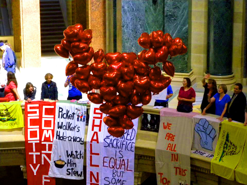 The protest fatigue has set in. We are merely days away from historic recall elections in Wisconsin. I have rallied, sung, created signs, documented, shared relevant news, reported relevant news the media did not cover, collected signatures, and encouraged voters. Was it enough? Will it hold up to GovernEr (his spelling, not mine) Walker’s out-of-state, special interest money? Can we break his propaganda machine? Will we trust the outcome of the election with people like the Waukesha County Clerk overseeing the results? Tensions are high. I feel like I have more riding on the outcome of this election than Tom Barrett. Never before have I invested so much of myself to any cause.