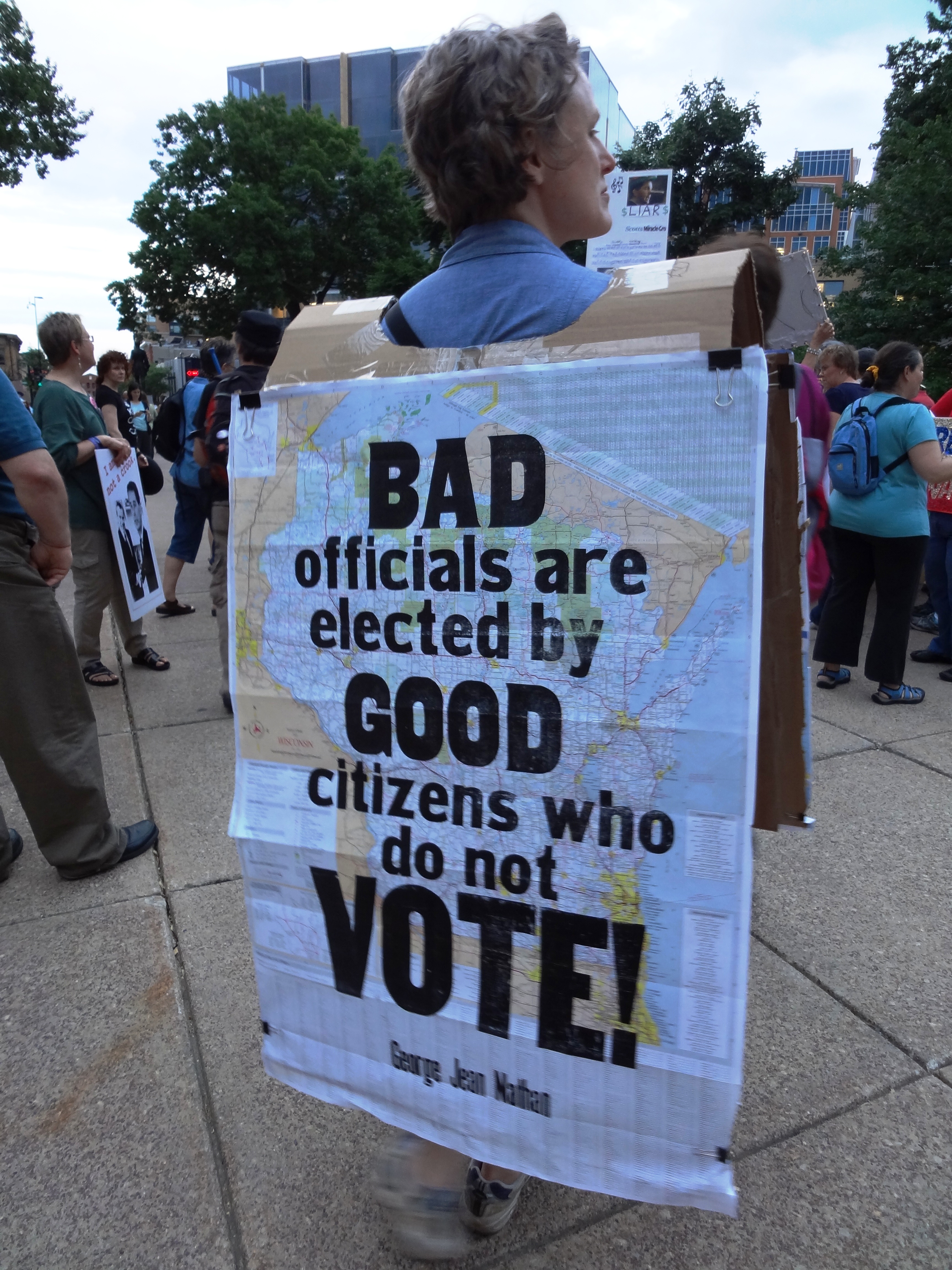 Seeing great turnout at the polls being reported, I was surprised to hear our TEApublicCon Governor gloat on the news about how he feels “Wisconsin just wants this over” so we can get our TV and radio back! We want our Wisconsin back, freed from the clutches of his dictatorial Fitzwalkerstan Regime.