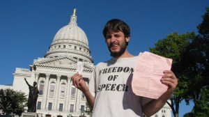 In front of the Wisconsin capitol last Friday, Jeremy Ryan (aka Segway Jeremy), a peaceful activist opposed to Governor Scott Walker’s radical right-wing agenda, spoke about a court appearance he’d had earlier in the day.