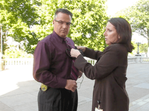 Chief Erwin and POI Stephanie Marquis prepare for a rare interview with WMTV. Photo by Nicole Schulte