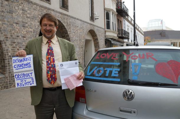 Edward Kuharski shows off his two tickets received for a spontaneous event in the Capitol on 9/14/12. To date, six other citizens have received 2 citations each for the same event. All of the tickets have arrived in the mail more than two weeks after the alleged offenses occurred. Photo: Leslie Amsterdam
