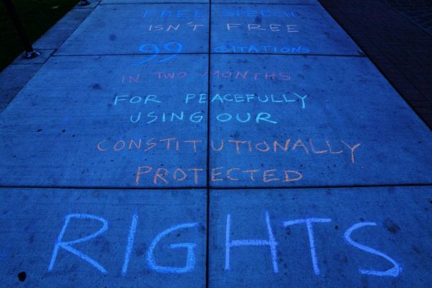 Outside the Wisconsin Capitol 11/15/12. At least 99 citations have been issued to peaceful protesters over the last few months in a crackdown over First Amendment rights and permit regulations of Free Speech activity at the Capitol.