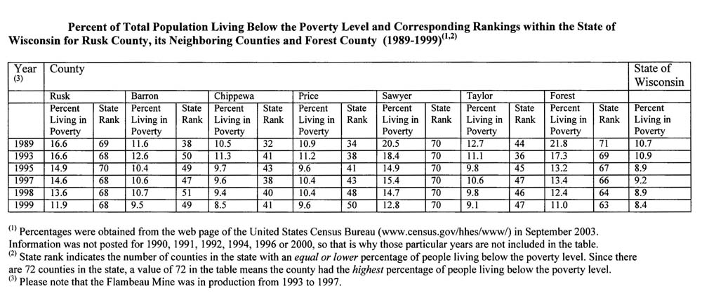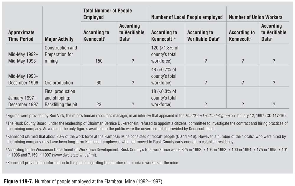 However, according to data received from Wisconsin Department of Workforce Development in 2002, Rusk County had the highest unemployment rate in the State during the years the mine operated (1993-1997). In fact, read the actual news reports through the years that revealed a rising unemployment rate while they were operating.