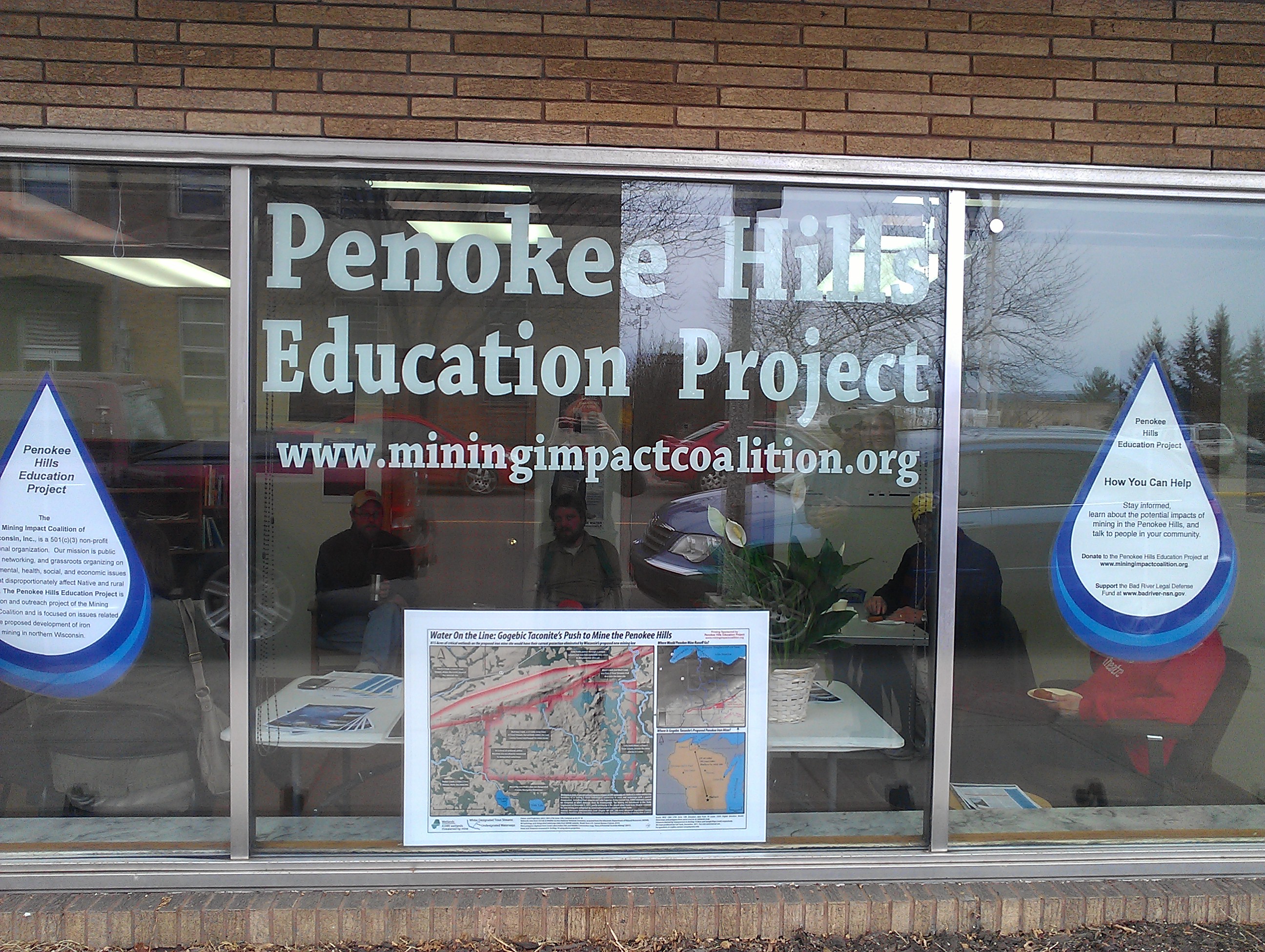 On the evening of April 5, 2013 the Penokee Hills Education Project and the Mining Impact Coalition opened the doors of their new offices and education center at 616 Main Street in downtown Ashland, Wisconsin. About 150 people attended the event, which marked the beginning of a permanent home for the community organization that was established to protect the water of the Bad River watershed.
