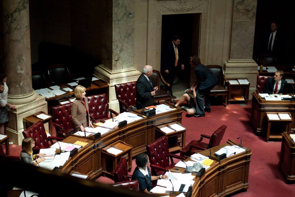 After the brief gathering the activists delivered wire coat hangers to the offices of several key legislators, including Sen Mary Lazich, the author of the bill, and Governor Scott Walker, who has promised to sign the legislation into law. The Senate resumed their debate after a brief recess to regain order and ultimately passed the 2013-2015 budget just after midnight.