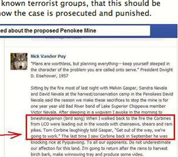 Iron County Forester Gary Glonek has been openly posting racist and misleading materials on his Facebook page that are attracting the attention of the Lac Courte Oreilles Band of Lake Superior Chippewa tribal attorneys. An avid and outspoken extreme pro-mining activist, Glonek is also part of the department that oversees public county forest lands, including the area where LCO has established a Harvest Camp.
