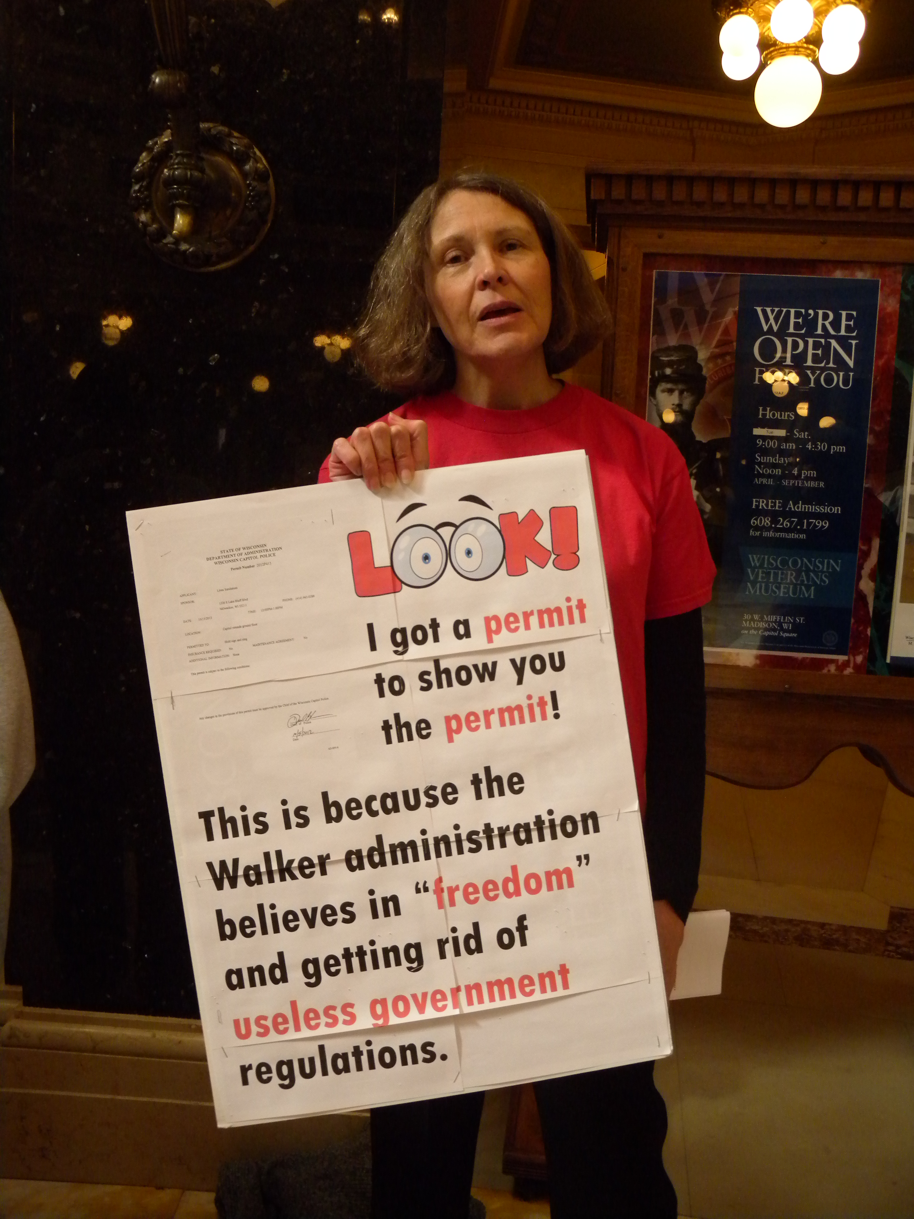 Please take the time to read Article 1, Section 4 of the Wisconsin Constitution: The right of the people peaceably to assemble, to consult for the common good, and to petition the government, or any department thereof, shall never be abridged.