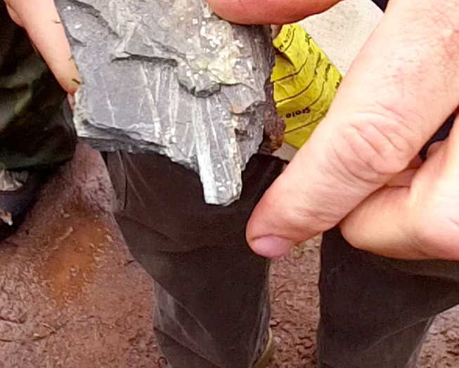 Dr. Joseph Skulan holds a piece of rock from bulk sampling site #4 that contains chrysotile, one of the deadliest forms of asbestos.