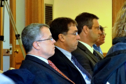 Joe Rose Sr., Joe Rose Jr., Barbara With at a press conference in Mellen, Aug 2013. Photo: Rebecca Kemble