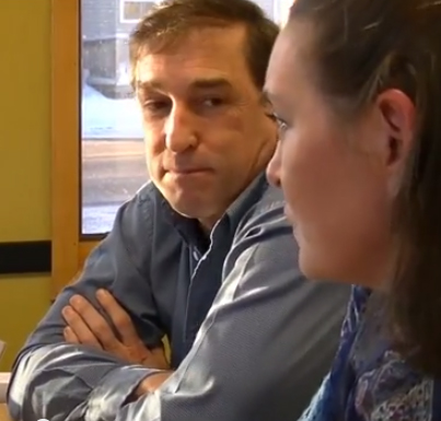 GTac President Bill Williams talks to Linnea Schmid in a recent one-to-one meeting in Mellen on January 8, 2014.