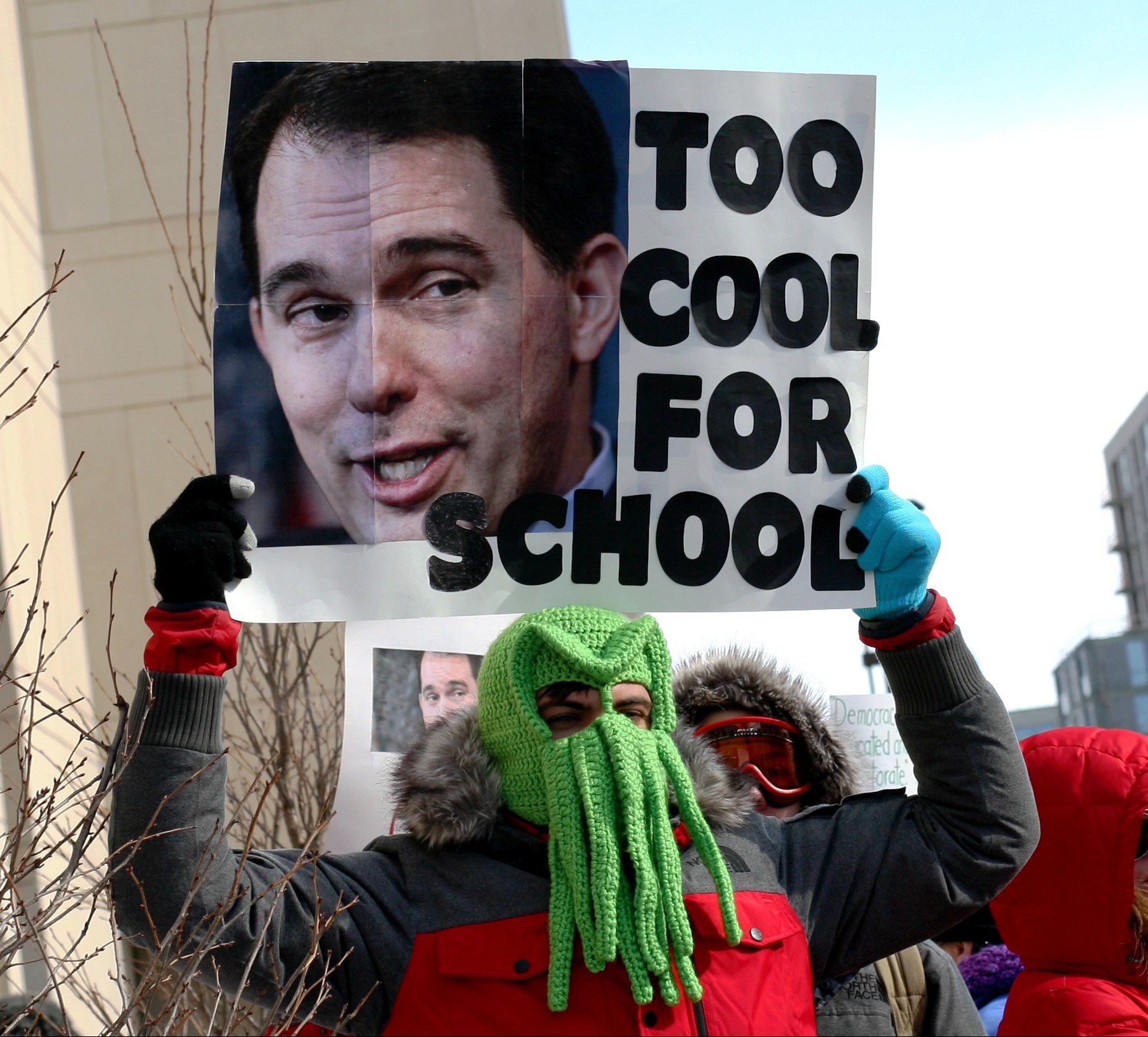 Frigid temperatures with below zero wind chills did not keep several hundred citizens from celebrating the fourth anniversary of the I❤️UW rally of February 14, 2011, which ignited the Wisconsin Uprising.