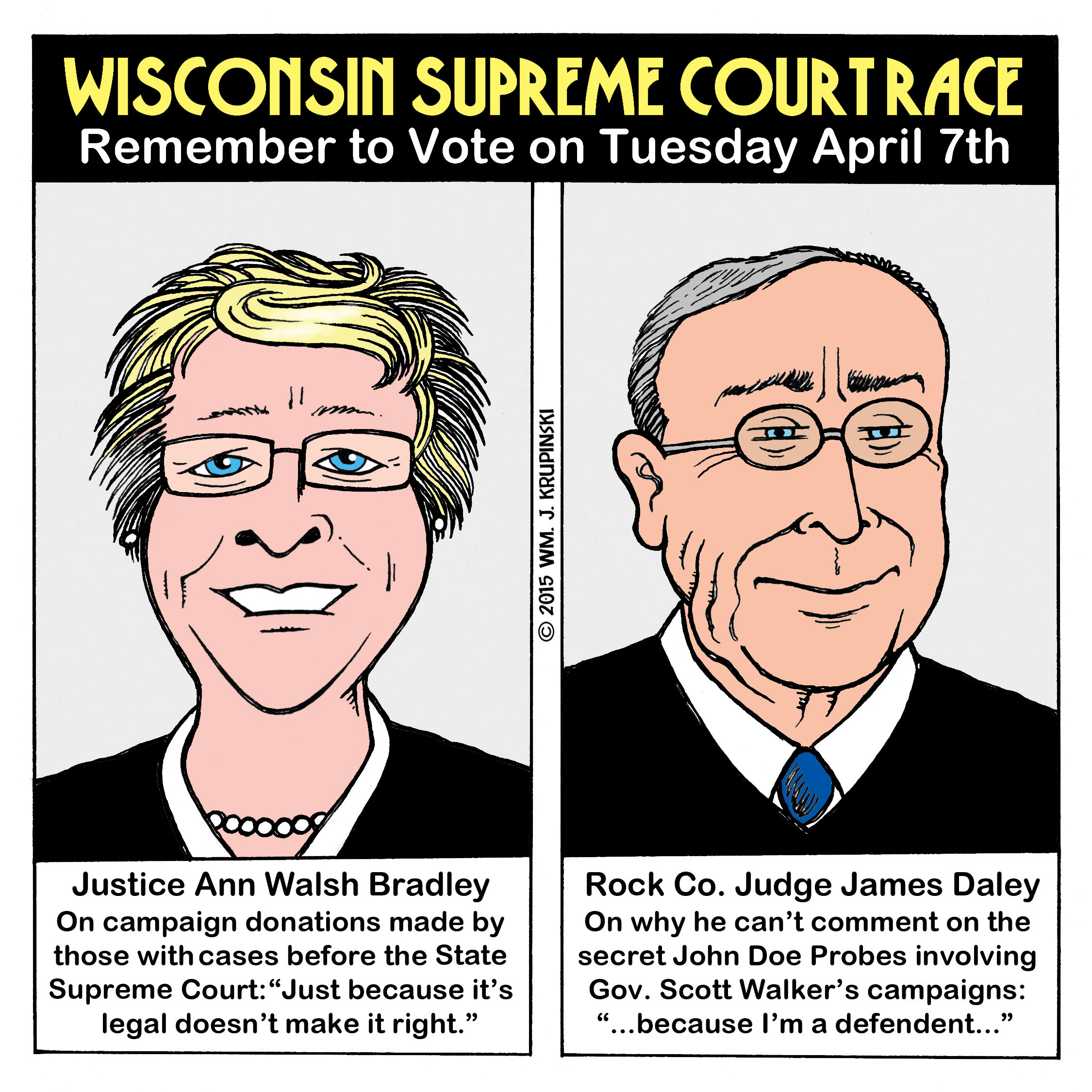 In an interview with Isthmus on March 26, Supreme Court candidates James P. Daley and incumbent Ann Walsh Bradley both admitted that, if elected, they would recuse themselves from hearing the upcoming John Doe case.