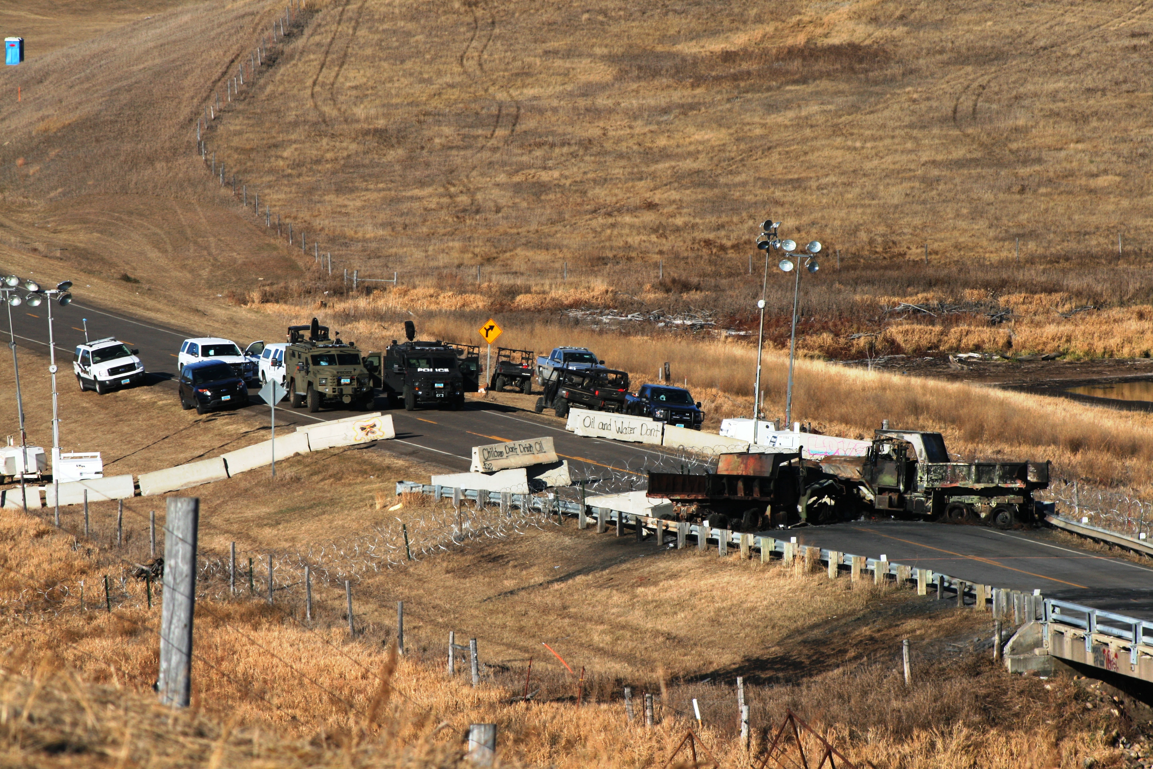 Backwater bridge just north of Oceti Sakowin Camp on route 1806 has been blocked since late October.