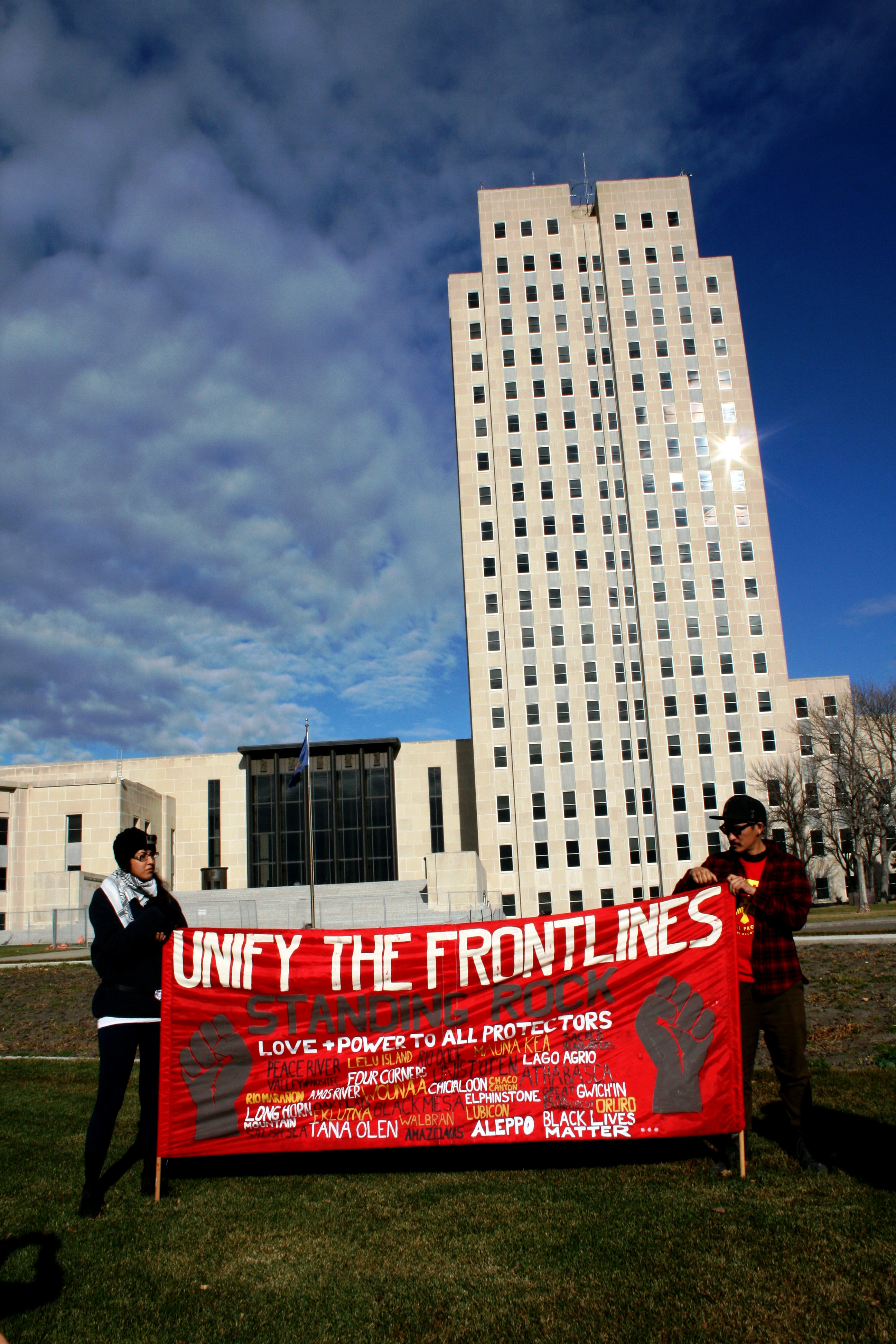 The reclaiming of this unceded treaty land of the Standing Rock Sioux Tribe and the historic, supportive gathering of Indigenous people from all over the world is the most important battle in this moment, representative of the ongoing worldwide struggle between human beings and the corporate interests who rule them. It has been over 500 years of colonialism, forced relocation, wars, broken treaties, land grabs, and cultural genocide. The time is now to take a stand to stop the Dakota Access Pipeline and all of the immoral, evil forces that it represents. I’m all in, are you?