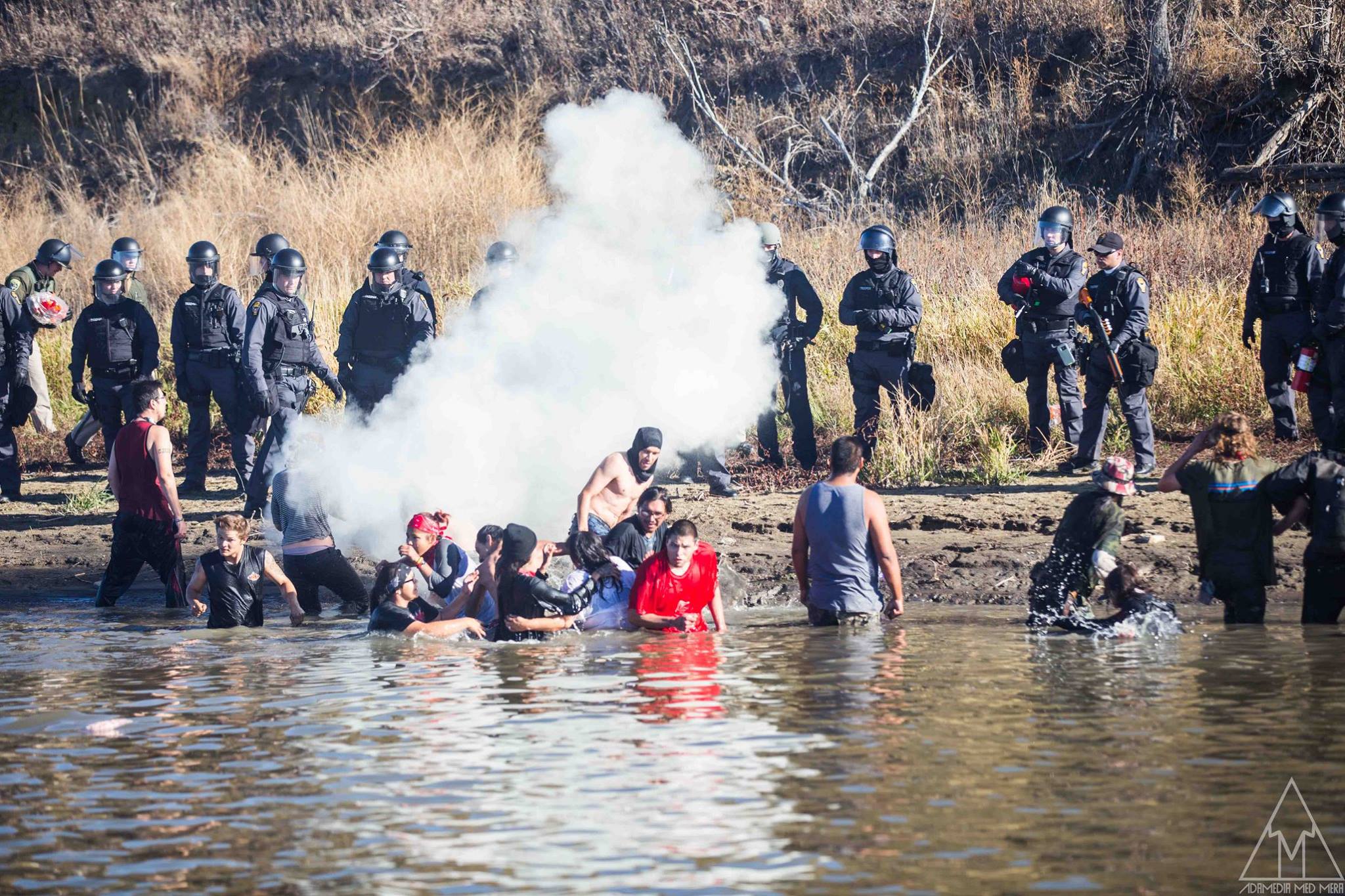 The Morton County Sheriff’s department made the decision to take a hard-line, militarized position in its response to the nonviolent activities of unarmed water protectors. This includes the use of water cannons, flash bang canisters, rubber bullets, and mace, which resulted in hundreds of water protectors being injured at the front lines.
