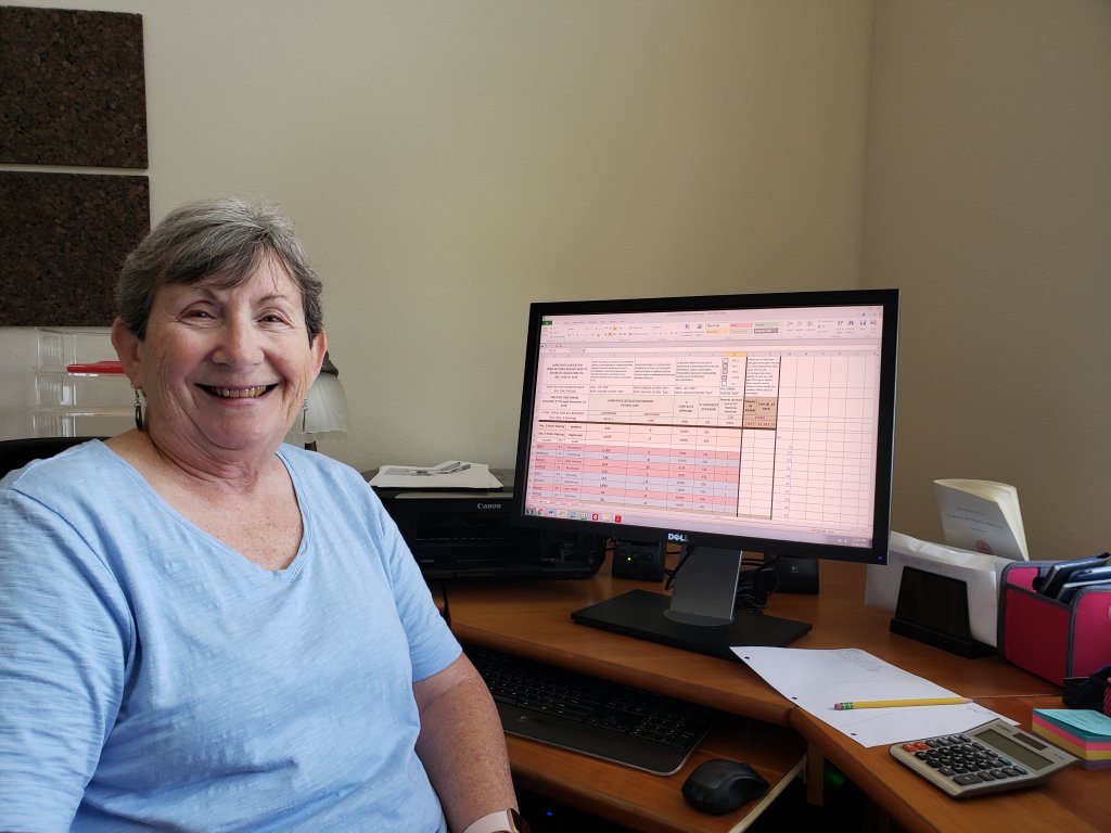 Sheila Plotkin with a spreadsheet she compiled of public comments for and against the laws Republican legislators passed in December to limit the powers of incoming Democratic Gov. Tony Evers. (Photo by Erik Gunn)