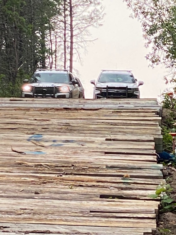 already ravaged by drought and corporate agriculture. Hubbard County Sheriffs keep watch at the top of the easement. Photo: Barbara Ryman
