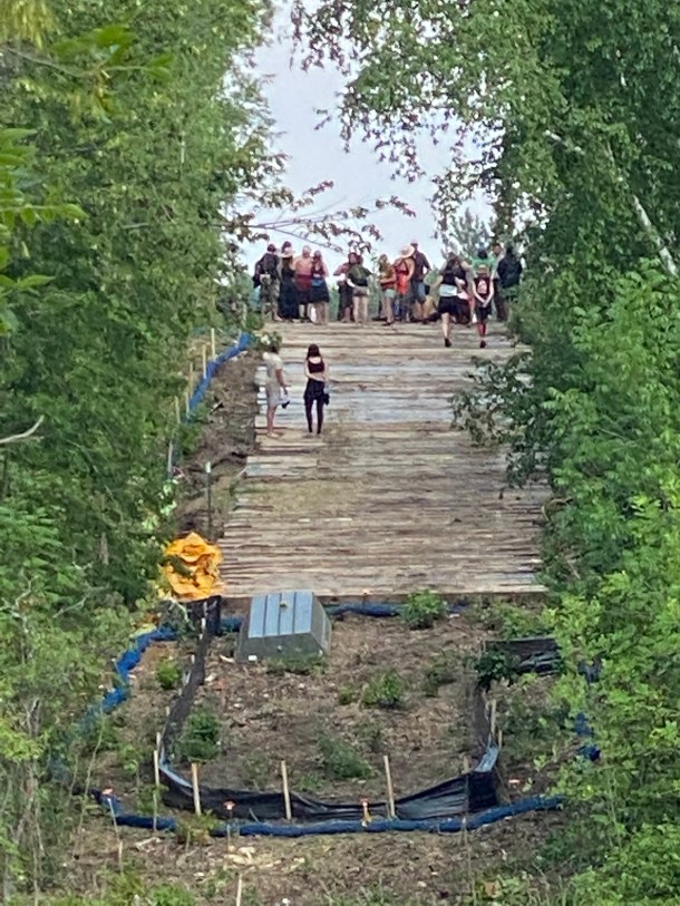 Some protectors then took horses, canoes and kayaks, and walked through the drought-stricken river to the easements; another group drove to access the easement from the Duck Lake entrance. Hubbard County Sheriffs monitored the situation and blocked entrances, but no arrests were made.