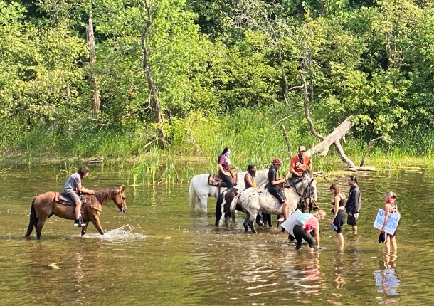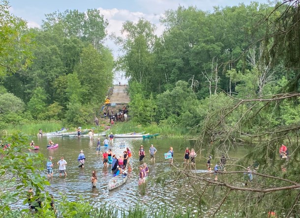Water protectors travel to the Enbridge easement on horses, in canoes and kayaks, and walking up the Shell River,