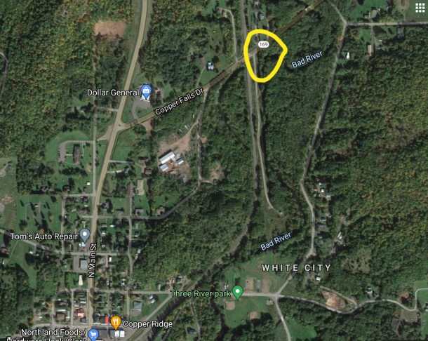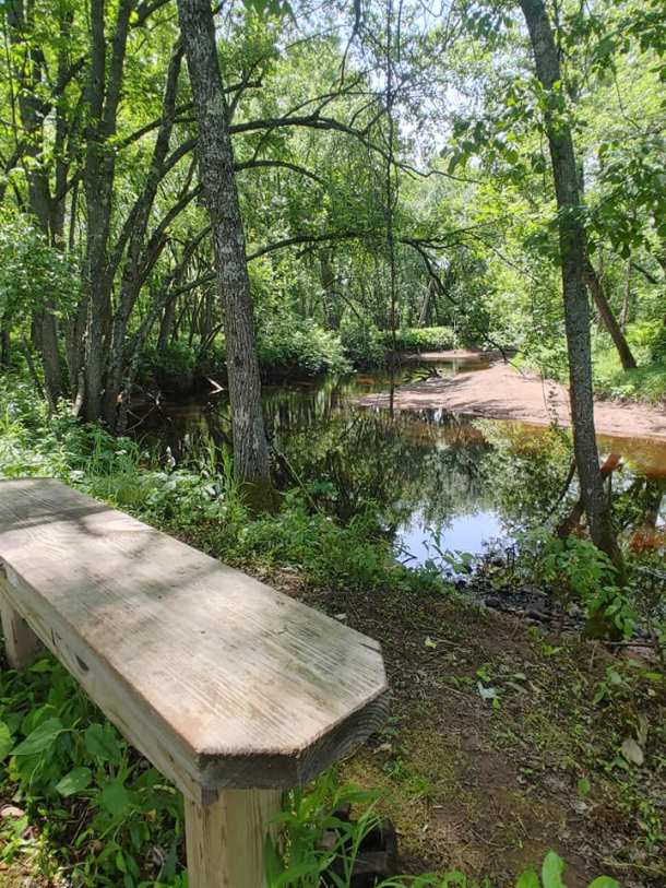Late morning, early afternoon as you come to Copper Falls State Park, stop at “The Bench” at the end of the Public Easement Conservancy Walkway and Bad River, north of Mellen just across the railroad tracks on Highway 169 going north.