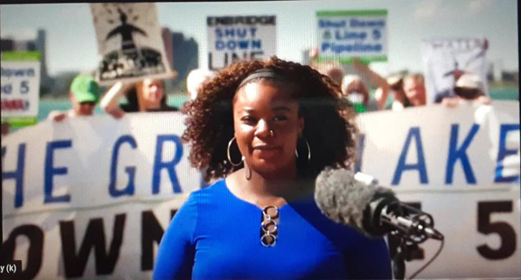 “The Line 5 pipeline is a threat to our lives,” Simmons said. “Every day the Line 5 pipeline carries oil, a fossil fuel, that is causing a major carbon spill in our atmosphere — every day — which is warming our planet at alarming rates.”