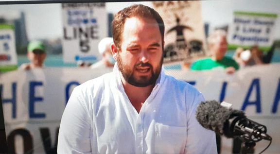 Sean Mc Brearty, campaign coordinator for Oil and Water Don’t Mix, spoke about the need to persuade Canada to support the Line 5 shutdown.