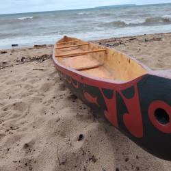 First dugout canoe produced on Mooningwanaakaning (Madeline Island) since 1854