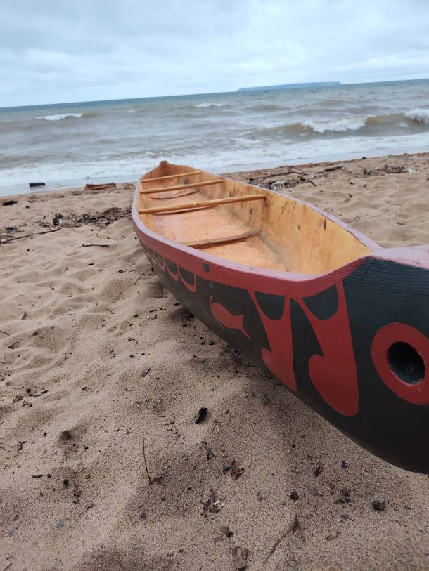 A public dedication of the canoe will take place Friday, September 30 at 4 PM at the La Pointe Center Arts Gallery at 103 Main Street, Mooningwaanakanig on 1854 Treaty Day, with riding time on Saturday, October 1 in the nearby bay at the end of Main Street.