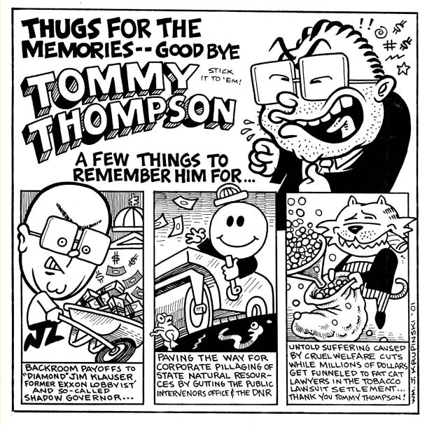 During a recent visit to Mellen, WI, ground zero for a proposed mountain top removal project in which a 1,000 foot deep, 4.5 mile long open pit mine is proposed, Sen. Glenn Grothman visited with 5th generation farmers at the O’Dovero-Flesia farm across the road from the proposed mine site. In answer to their concerns about their 150 foot deep well draining into the open pit, Grothman commented that the mining company could probably just caulk any leak in the bedrock. Click here for the story and video of the family recounting his visit.