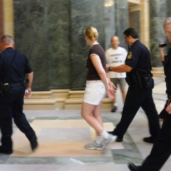 April 6, 2013 by Jason Huberty After a two-month lull, the Walker Administration’s crackdown on dissent in the Wisconsin State Capitol has kicked back into high gear. On Thursday April 4th, six Capitol Police officers marched down the stairs of the State Street entrance to the Capitol and handed out nine long-form complaints to three […]
