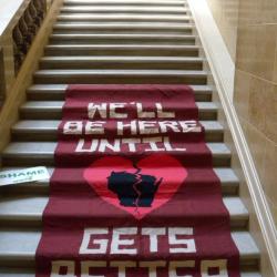 March 8, 2012 by WCMC March 7, 2012 was a special day. The ferrous mining bill AB426 was sent back to committee by Scott Fitzgerald, and I wanted to celebrate by coming to the Solidarity Sing Along. I picked up my banners and went to the Capitol rotunda at noon as I have hundreds of […]